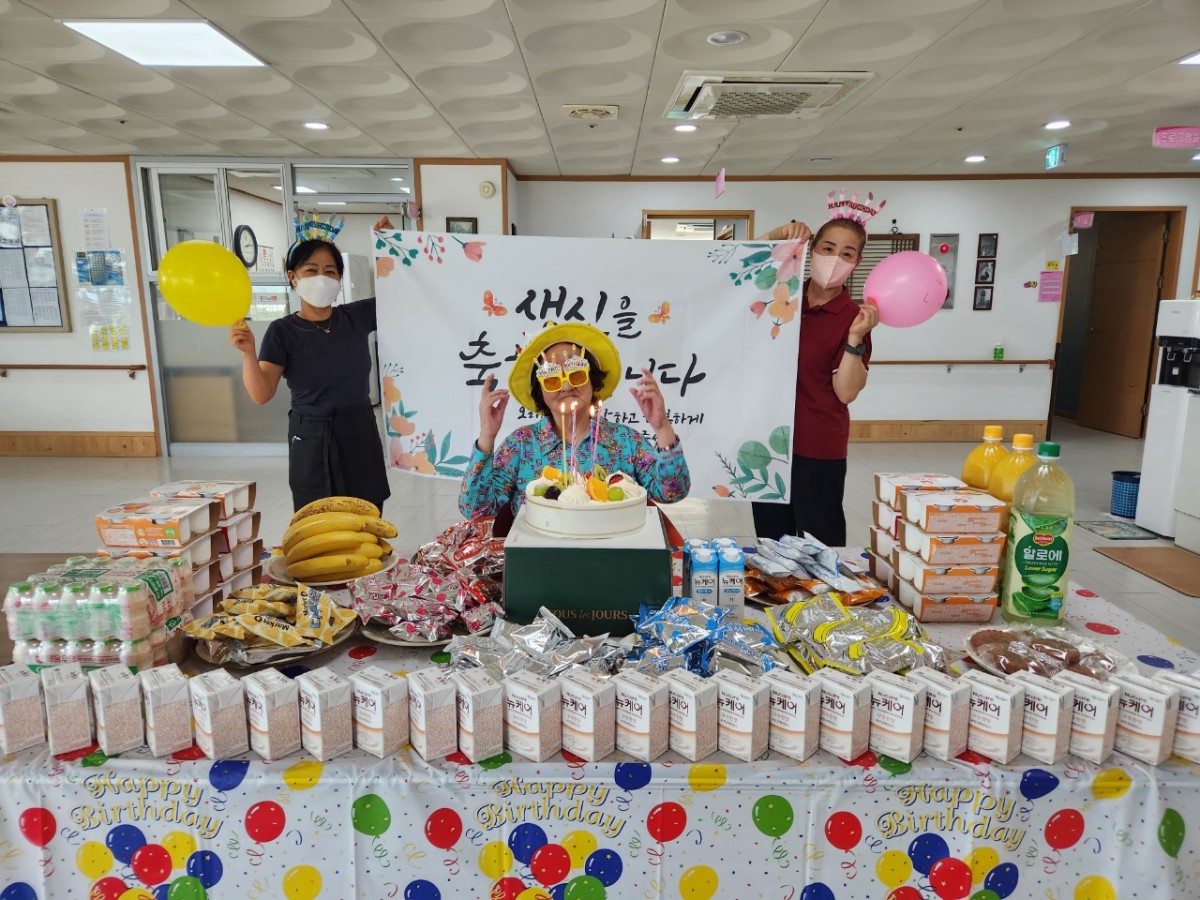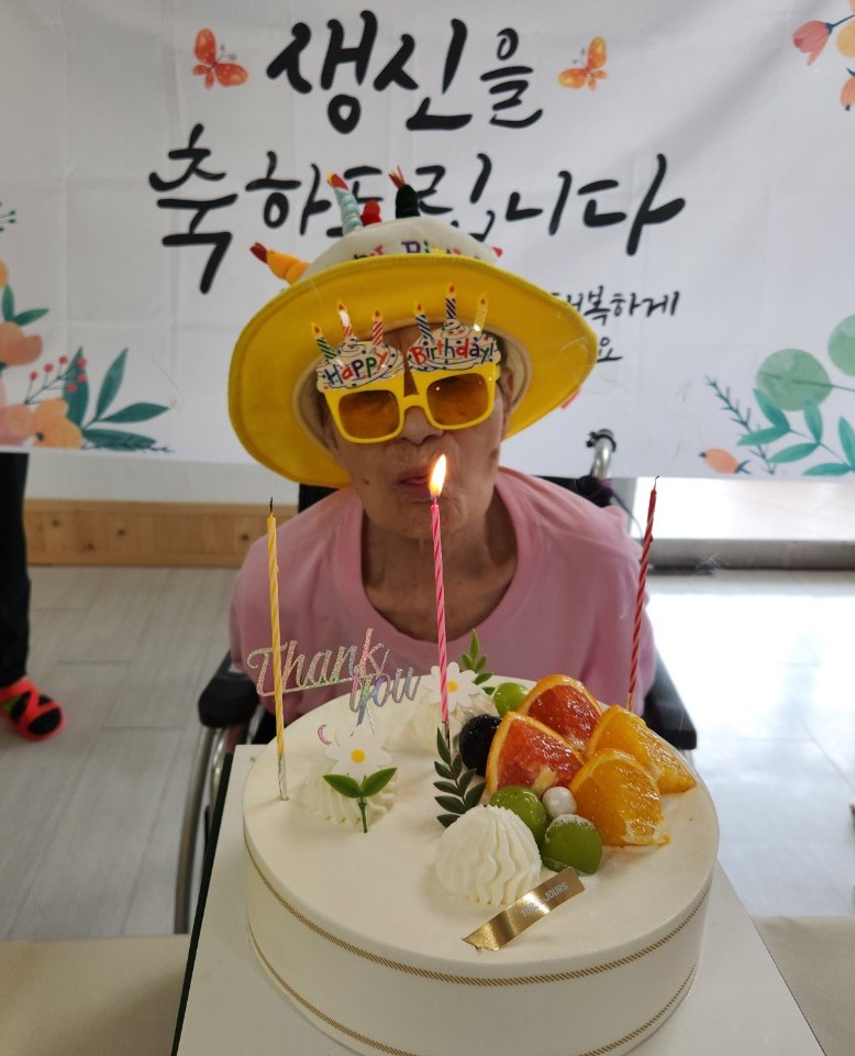 생신을 맞이하신 어르신들께서 밝은 미소로 초를 끄시고, 모두 함께 박수를 치며 따뜻한 시간을 보냈습니다.