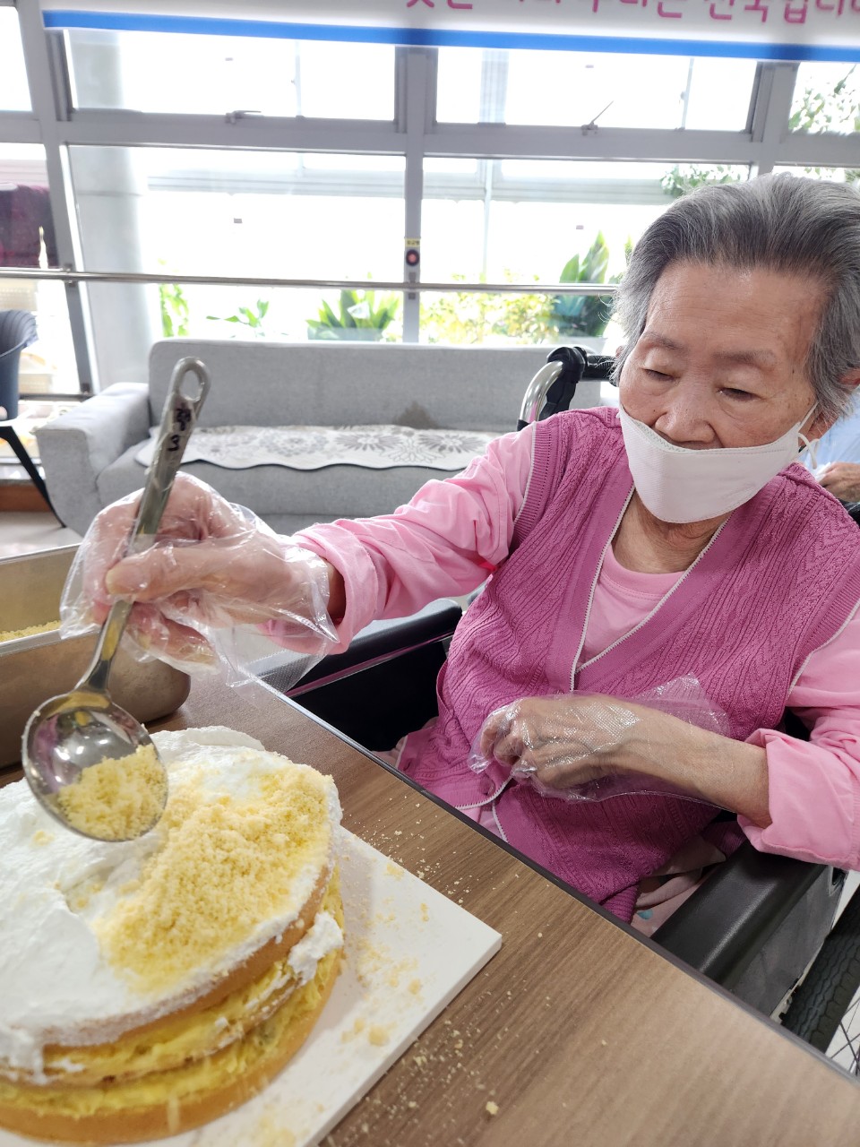 완성된 케이크를 보며 뿌듯해하시고, 같이 나눠 드시면서 달달하고 소소한 행복을 만끽하는 시간이었답니다.