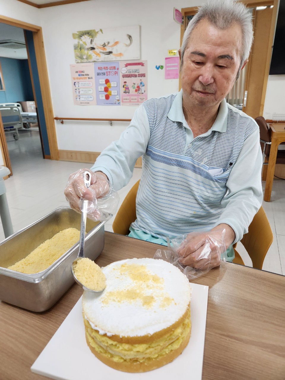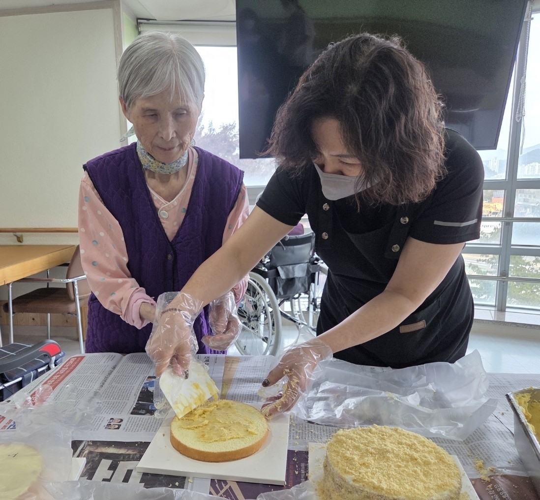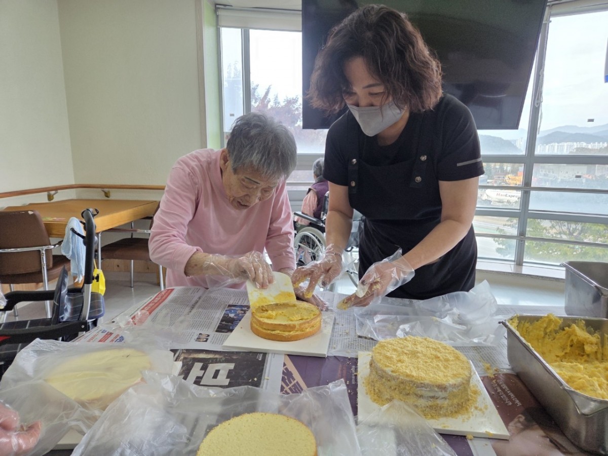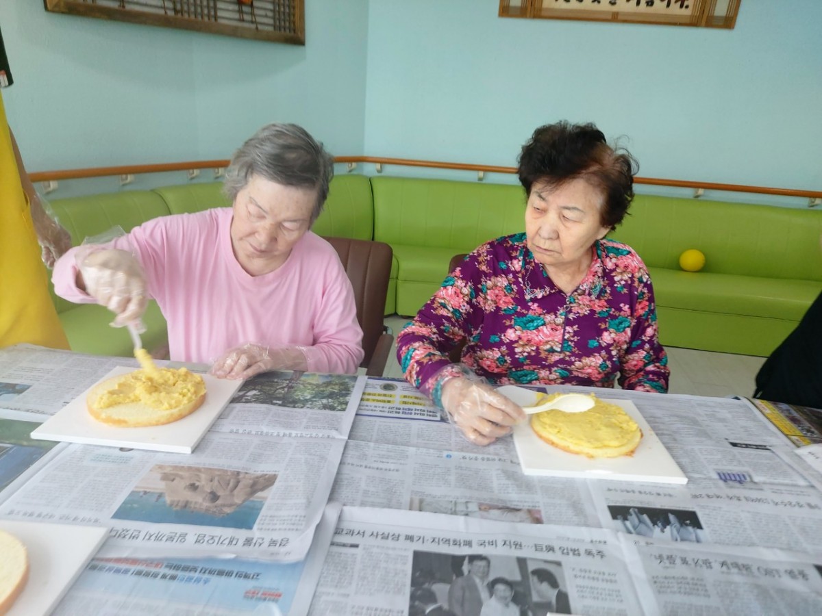 이번 요리교실에서는 어르신들과 함께 고구마 케이크 꾸미기 시간을 가졌습니다.