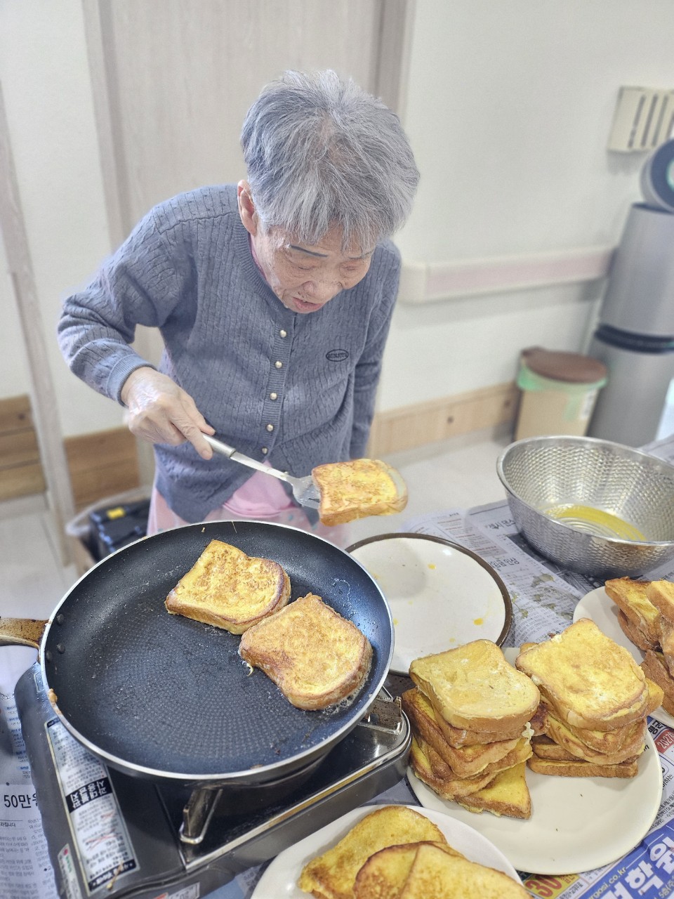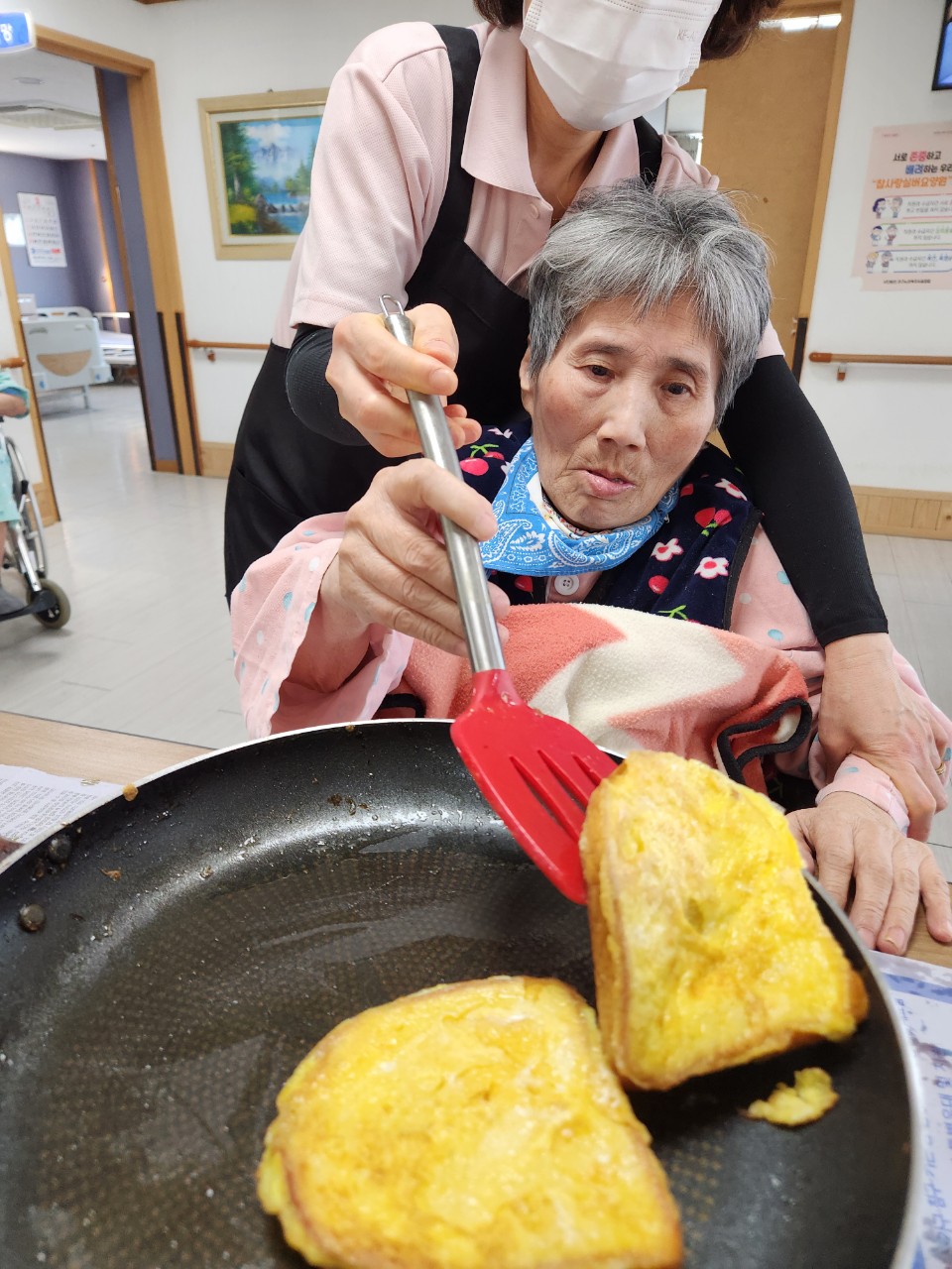 어르신들과 함께 고소하며 달달한 프렌치토스트를 만들어 봤습니다.