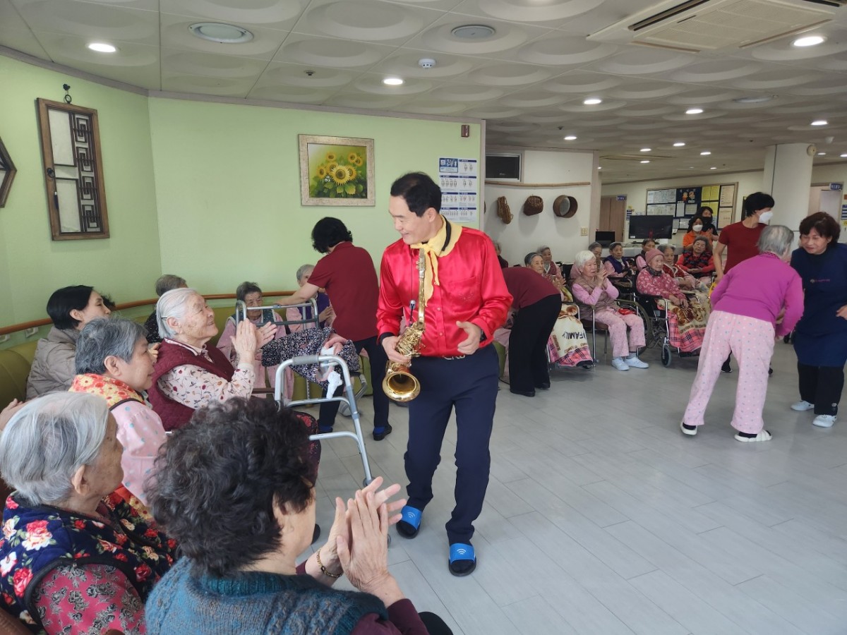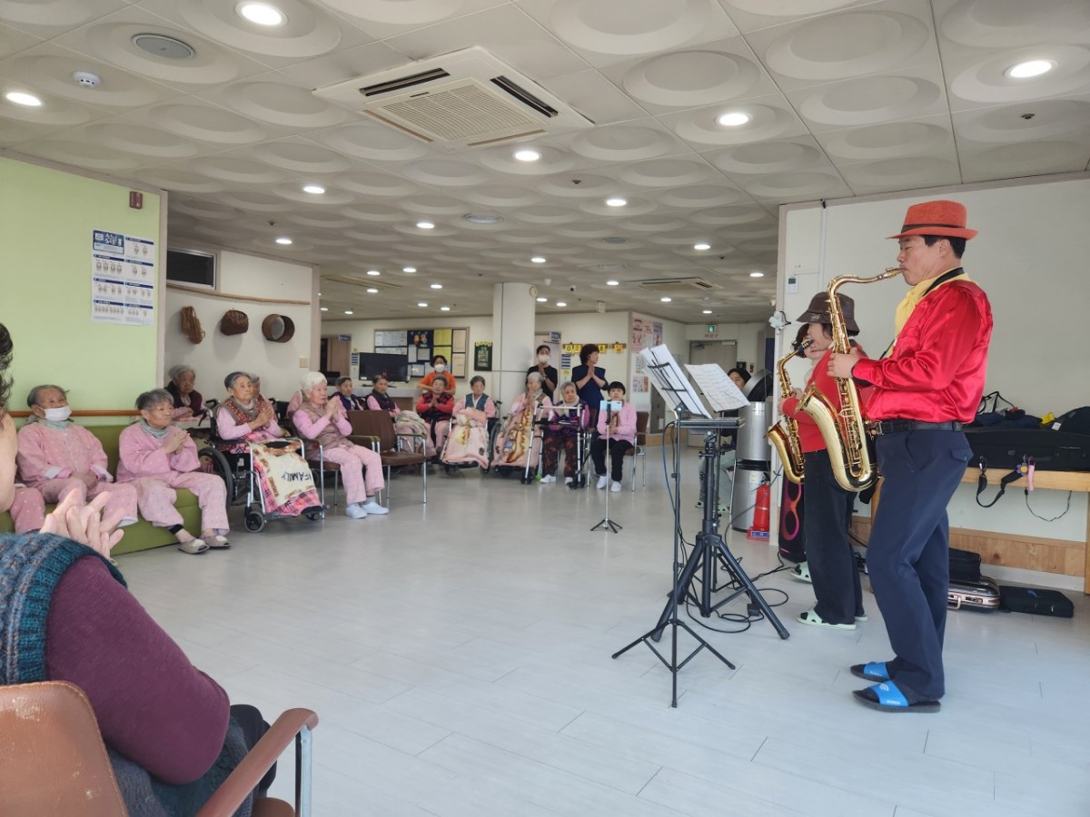 오늘은 장*한 어르신 보호자를 통해 색소폰 공연 봉사를 와주셔서