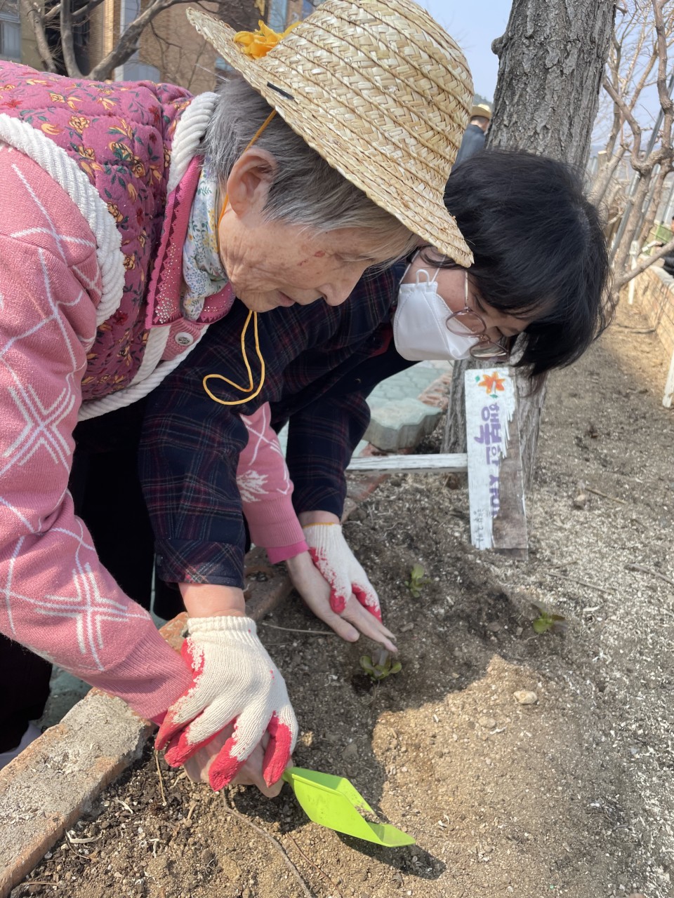 따뜻한 봄날에 심은 상추가 훗날 무럭무럭 자랄 수 있도록 정성껏 모종을 심으며 도란도란 즐겁게 얘기를 하며 프로그램에 적극적으로 잘 참여를 해주셨습니다.