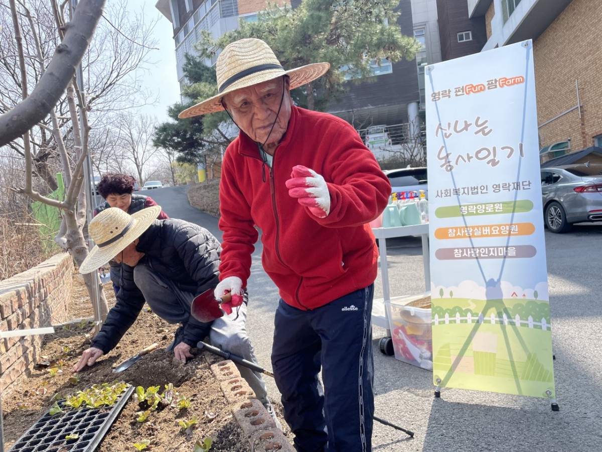 오늘 오후에는 참사랑 앞마당 벤치 화단에서 영락재단 어르신들과 직원이 다 함께 어울려 상추심기를 해보았습니다.